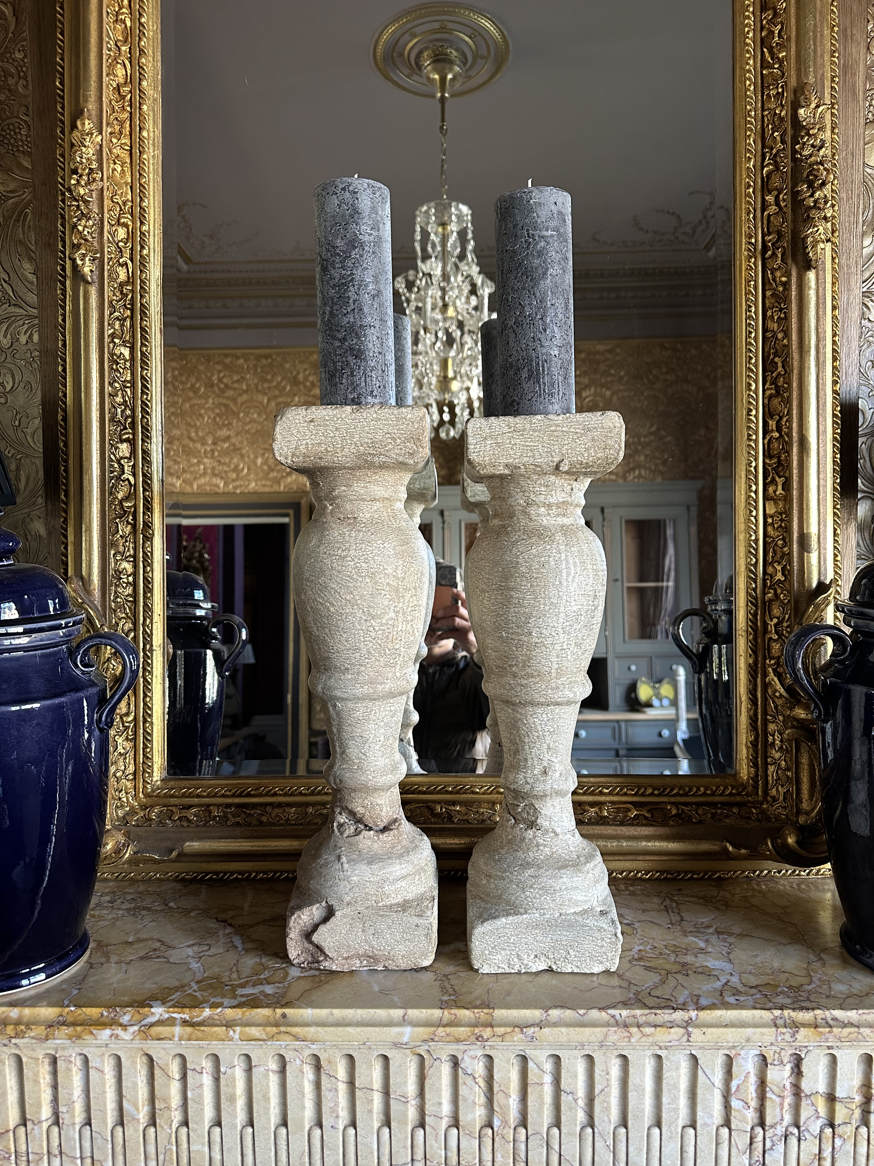 Zeer zware kandelaars, hoogte: 48cm