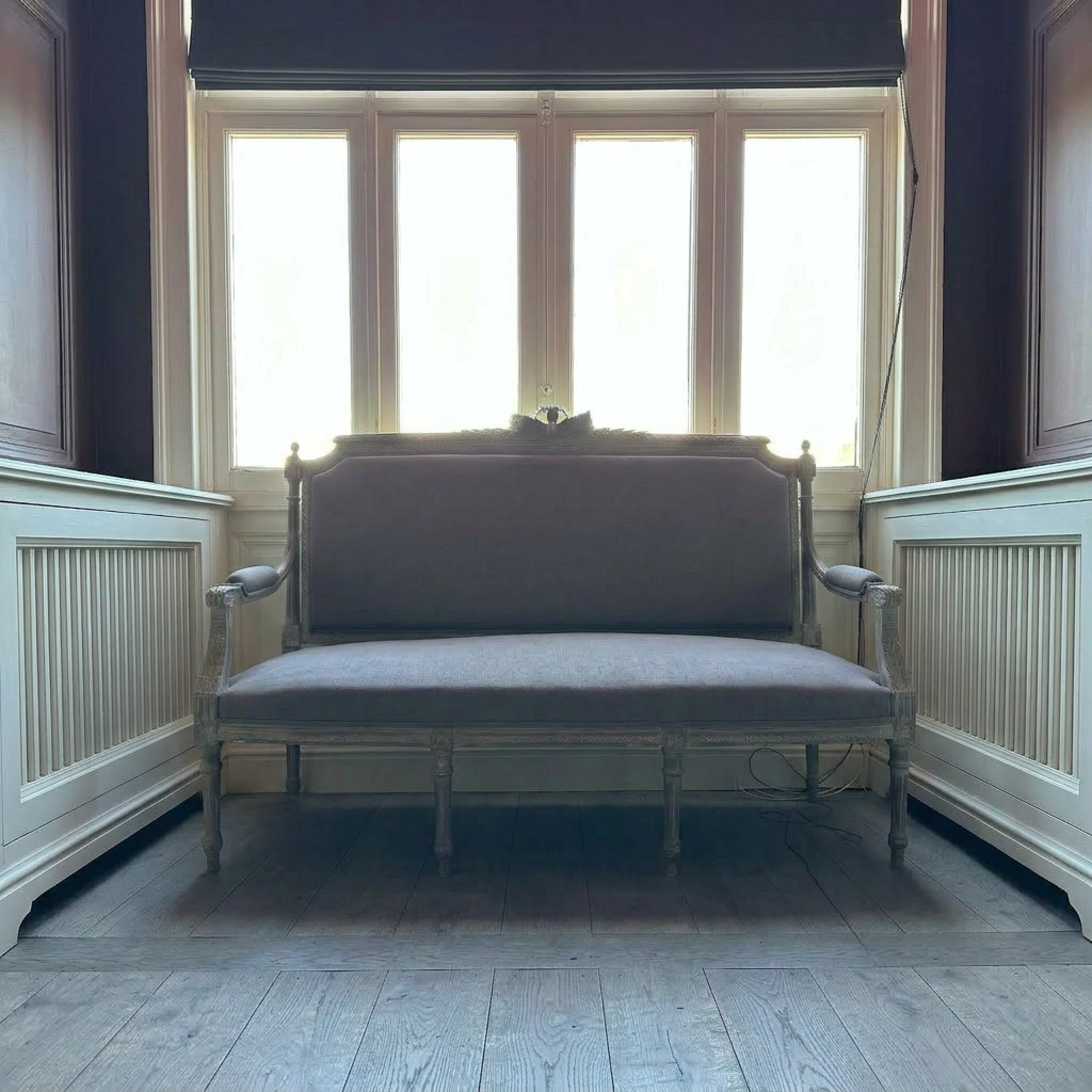 Bankje met blauw-violet katoenen bekleding