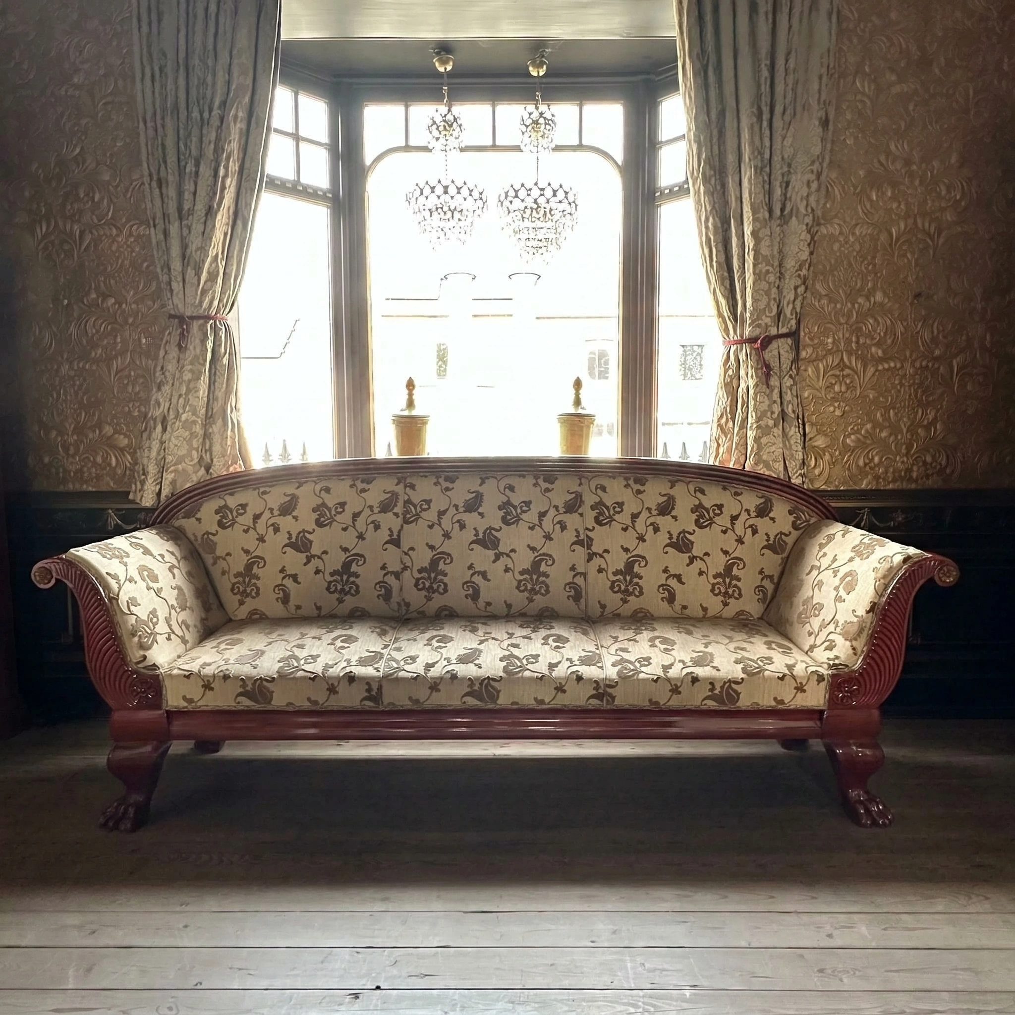 Prachtige grote gehergarnierde 4-persoonszetel in empire-stijl