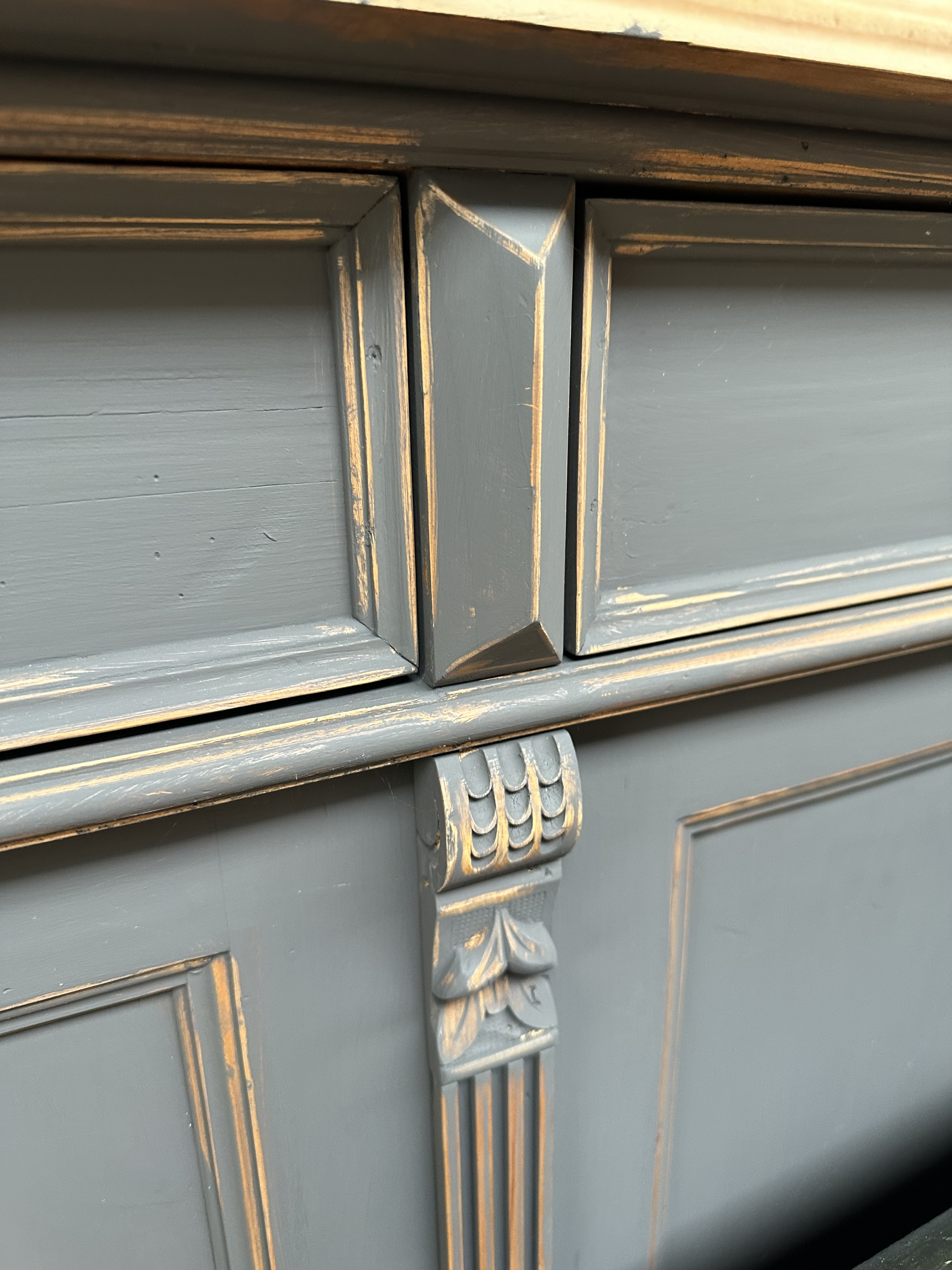 Afmetingen: lengte: 2m, hoogte: 2m20cm, diepte onderkast: 56 cm