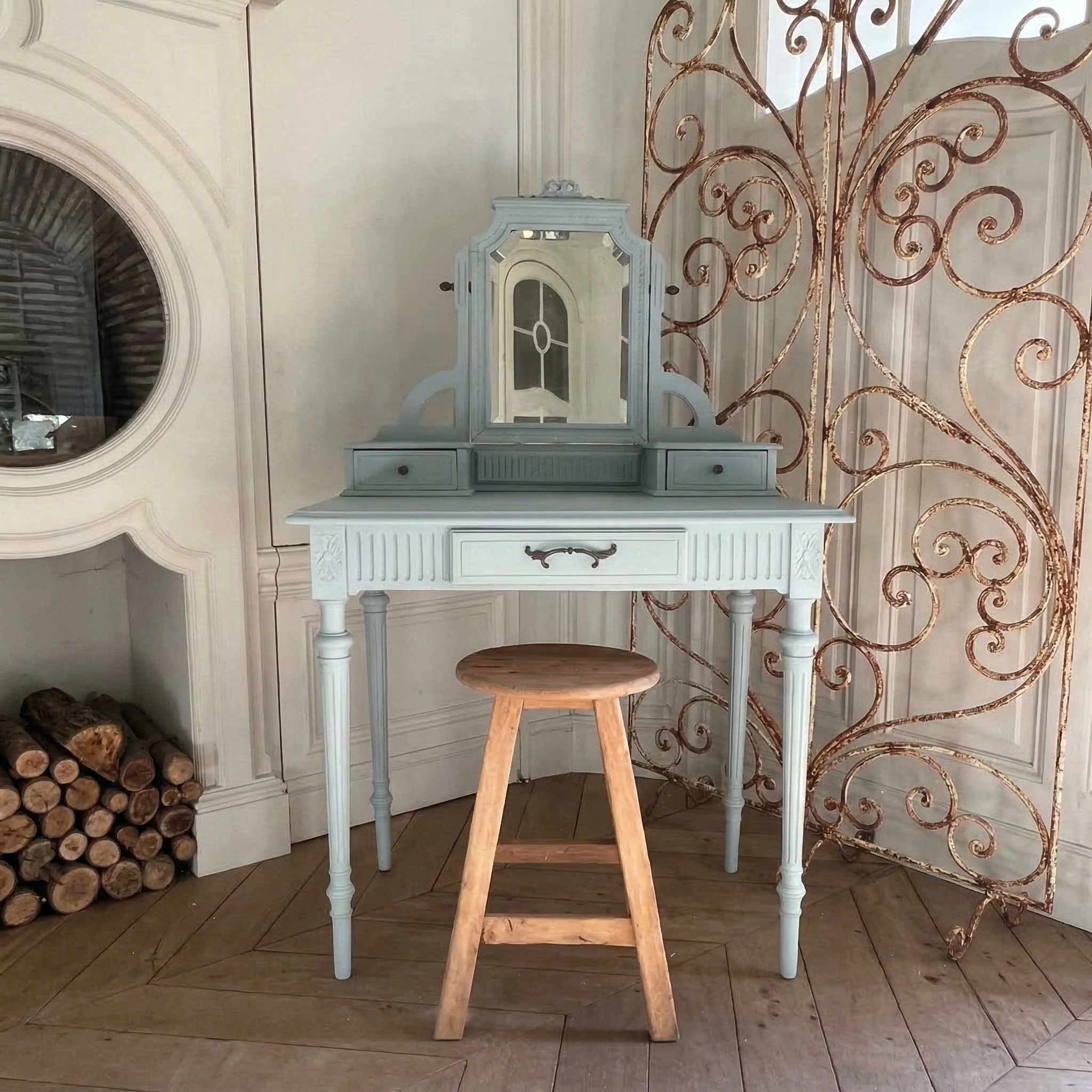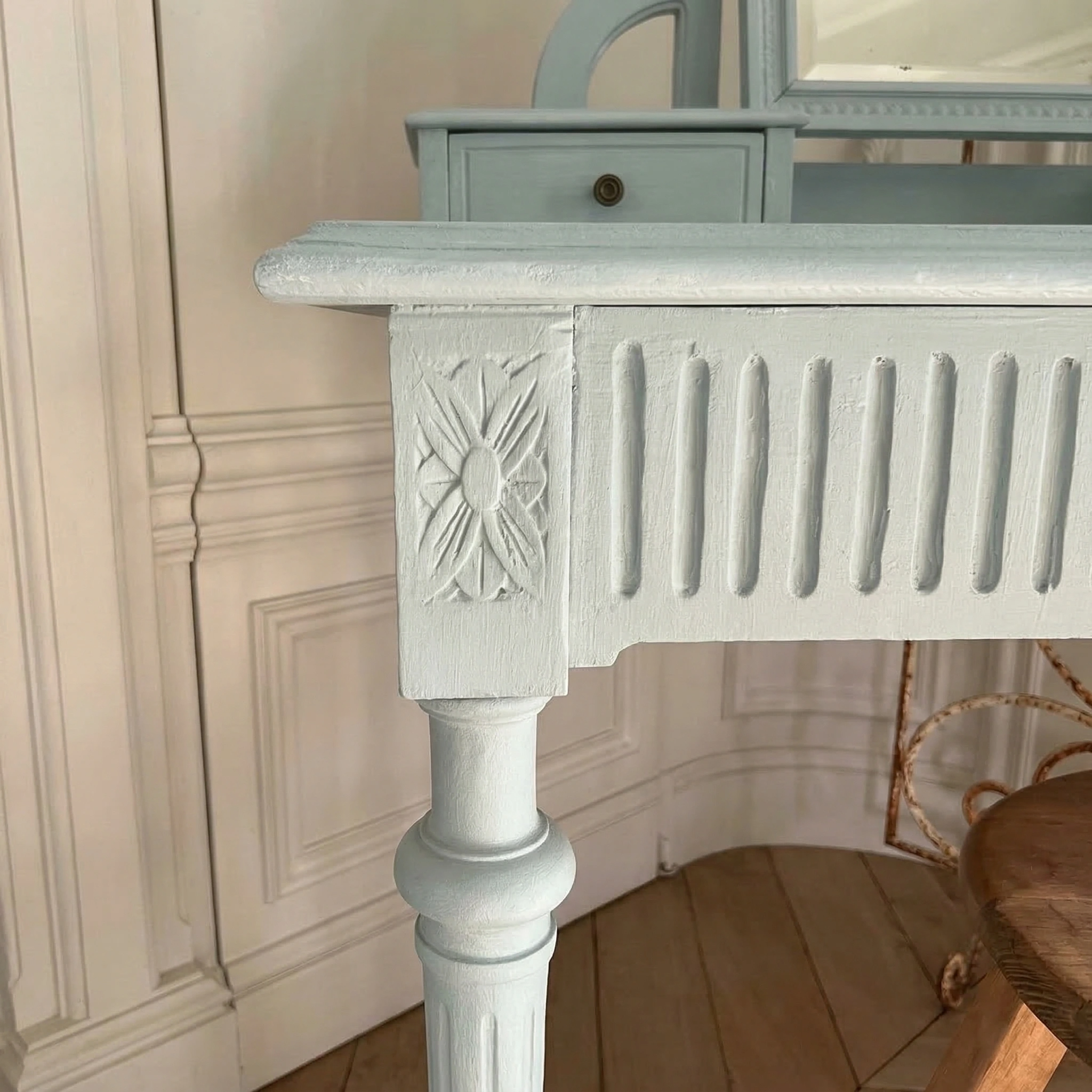 Charmante kaptafel met spiegel in babyblauwe kleur