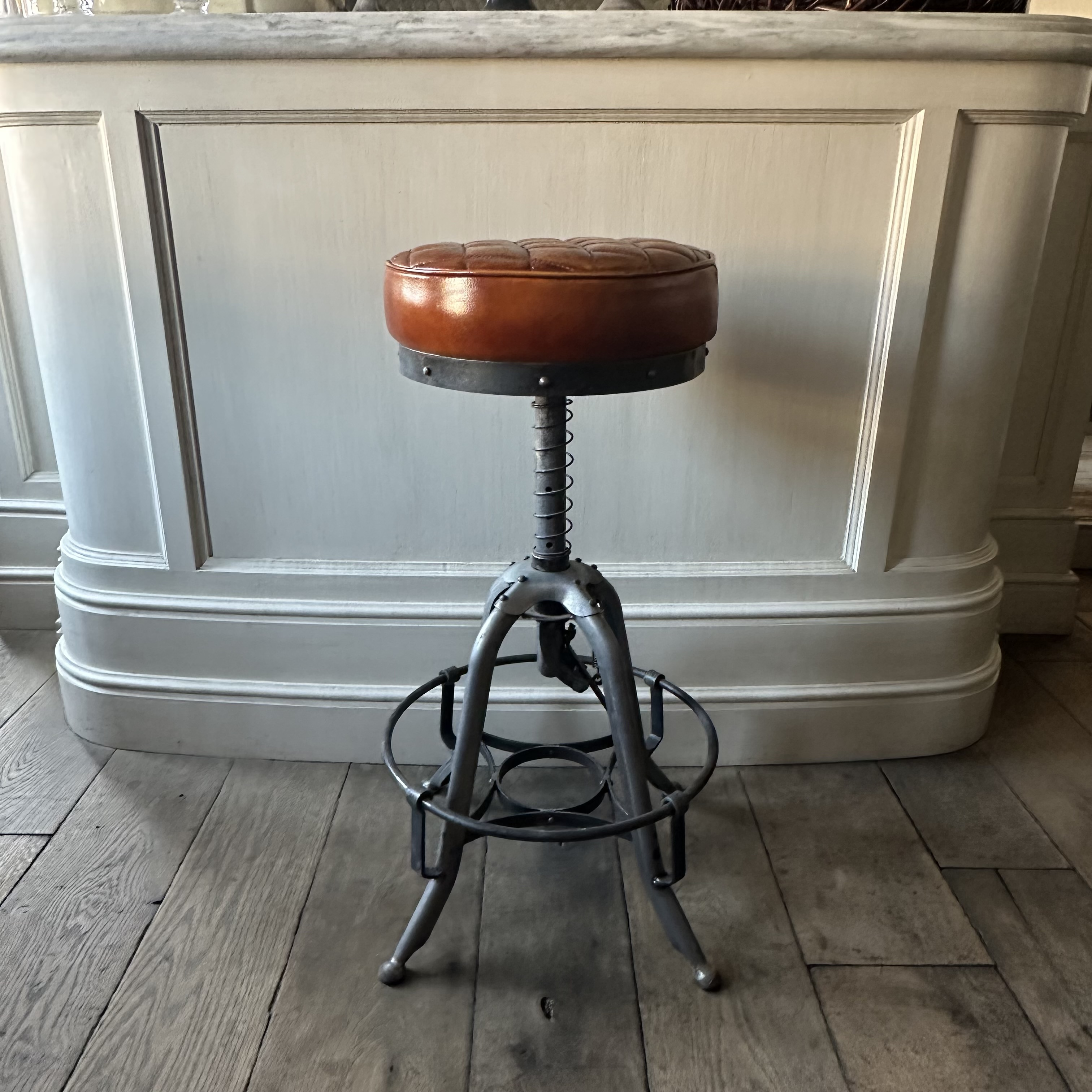 Krukken met geitenlederen zit, in hoogte verstelbaar (tussen 59cm en 81cm), €150/stuk