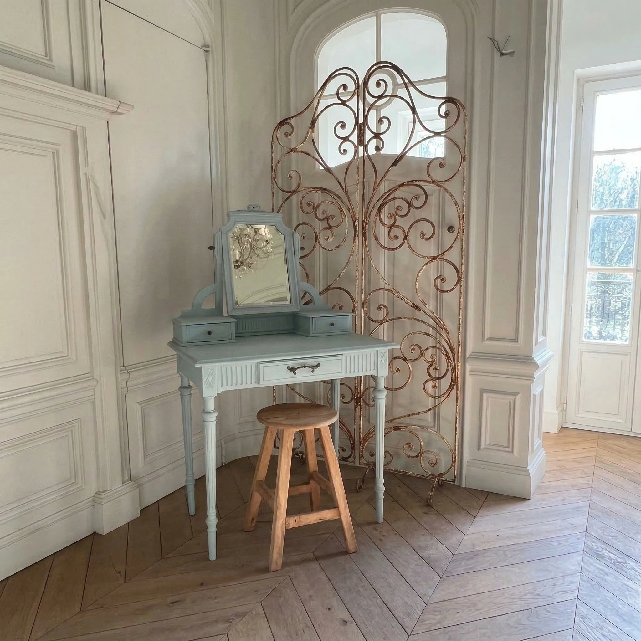 Charmante kaptafel met spiegel in babyblauwe kleur