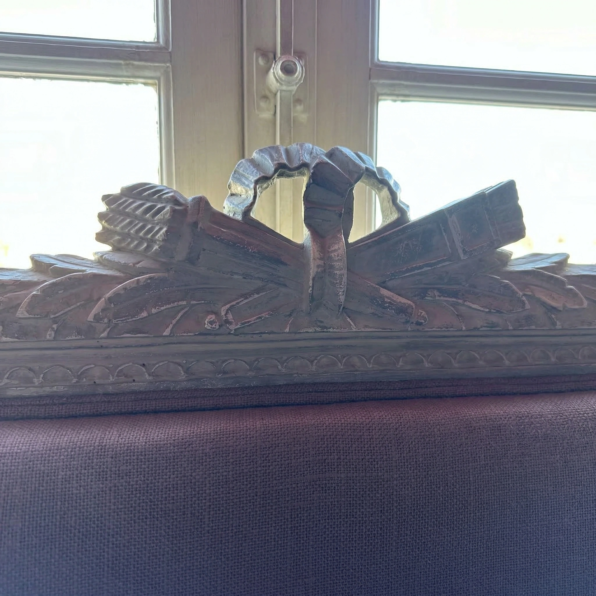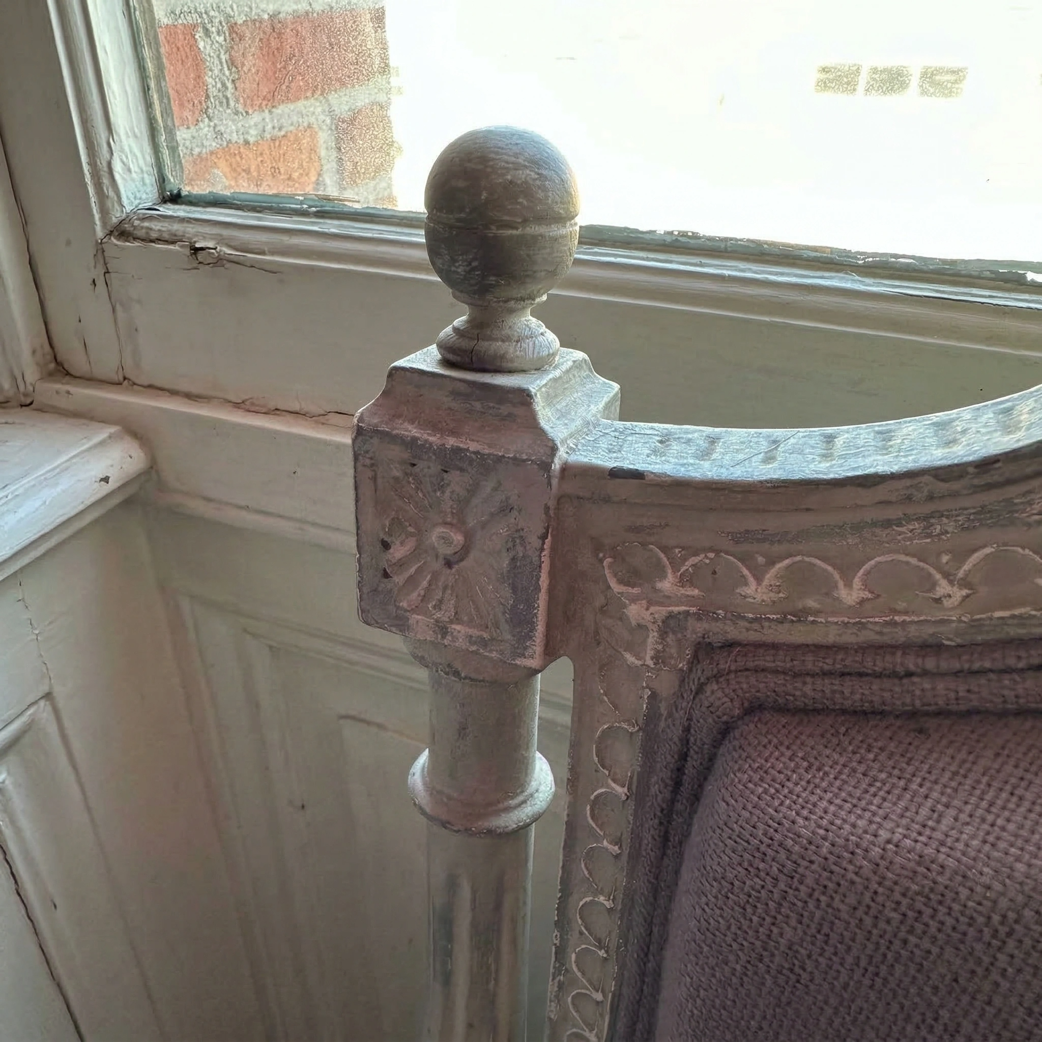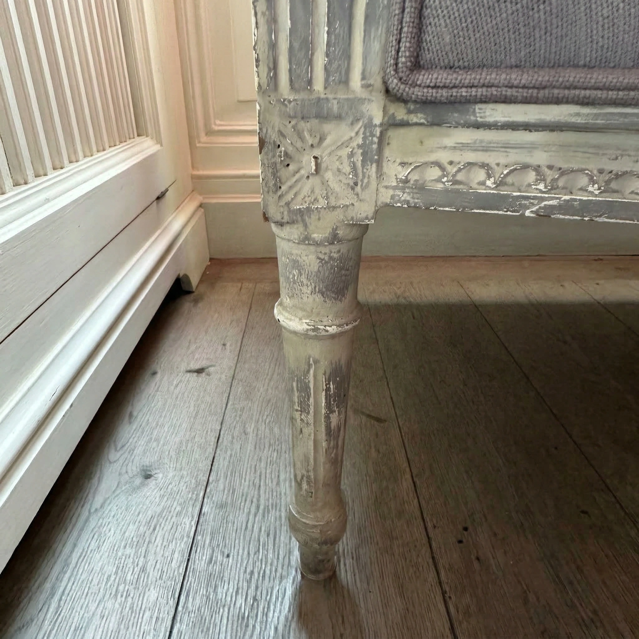 Bankje met blauw-violet katoenen bekleding