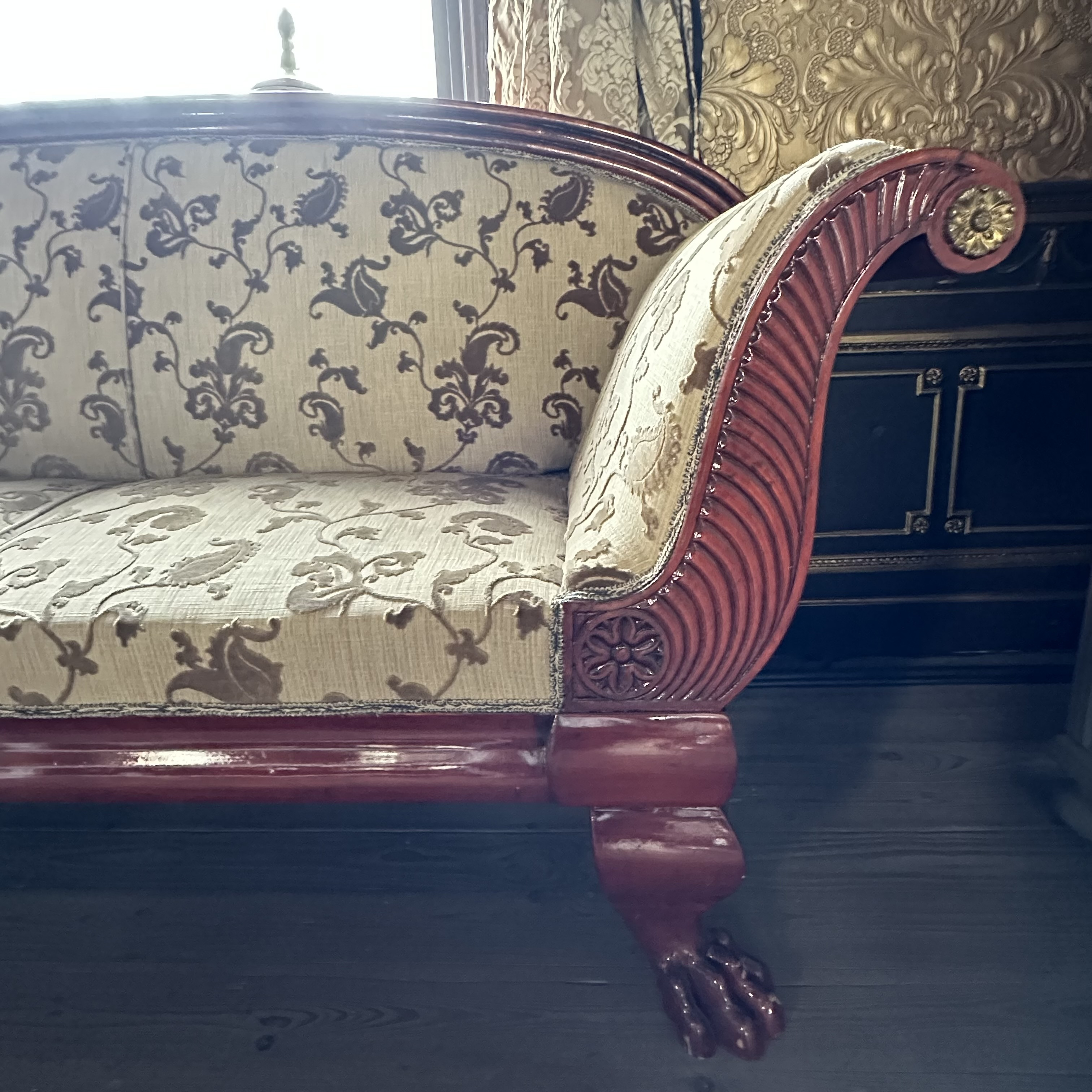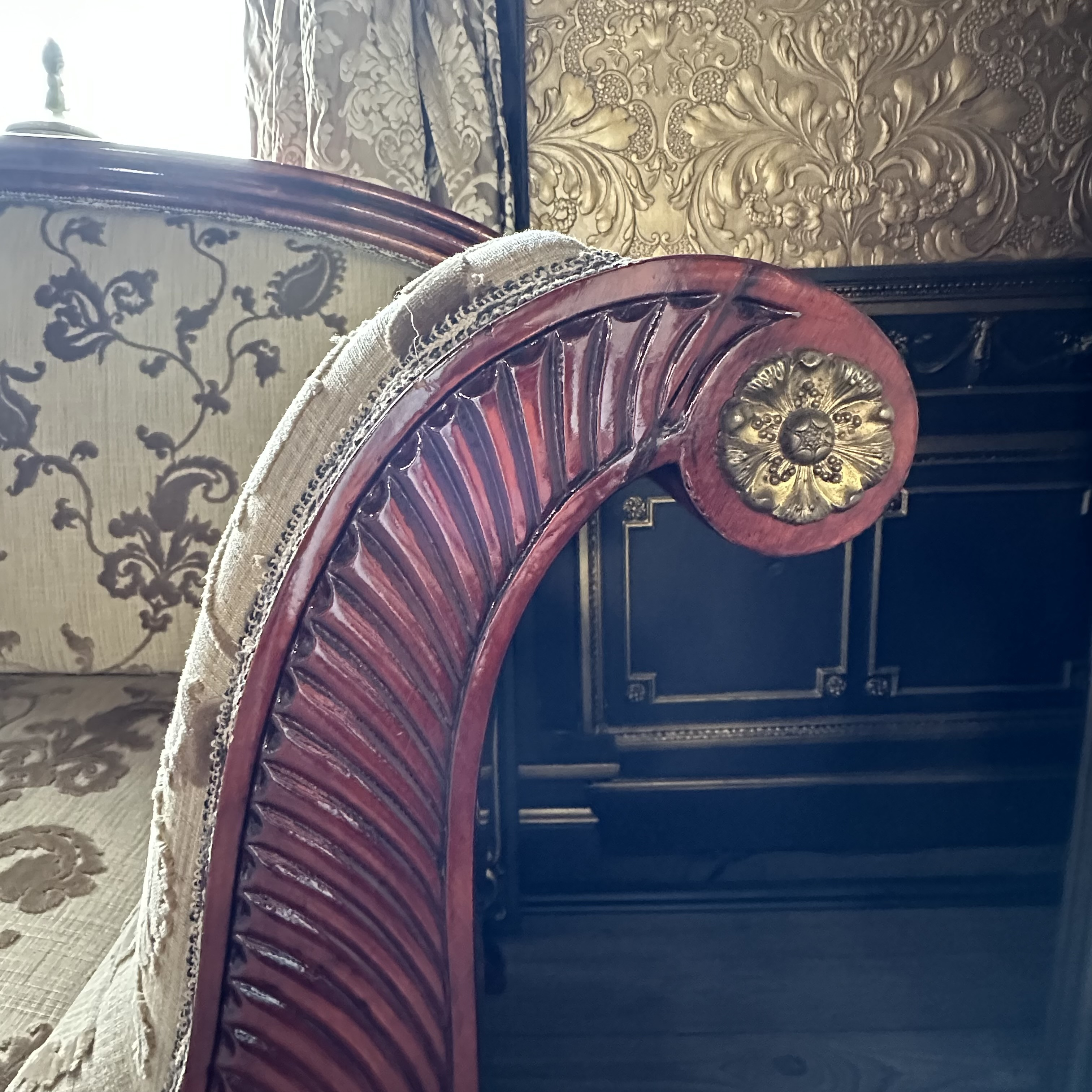 Prachtige grote gehergarnierde 4-persoonszetel in empire-stijl