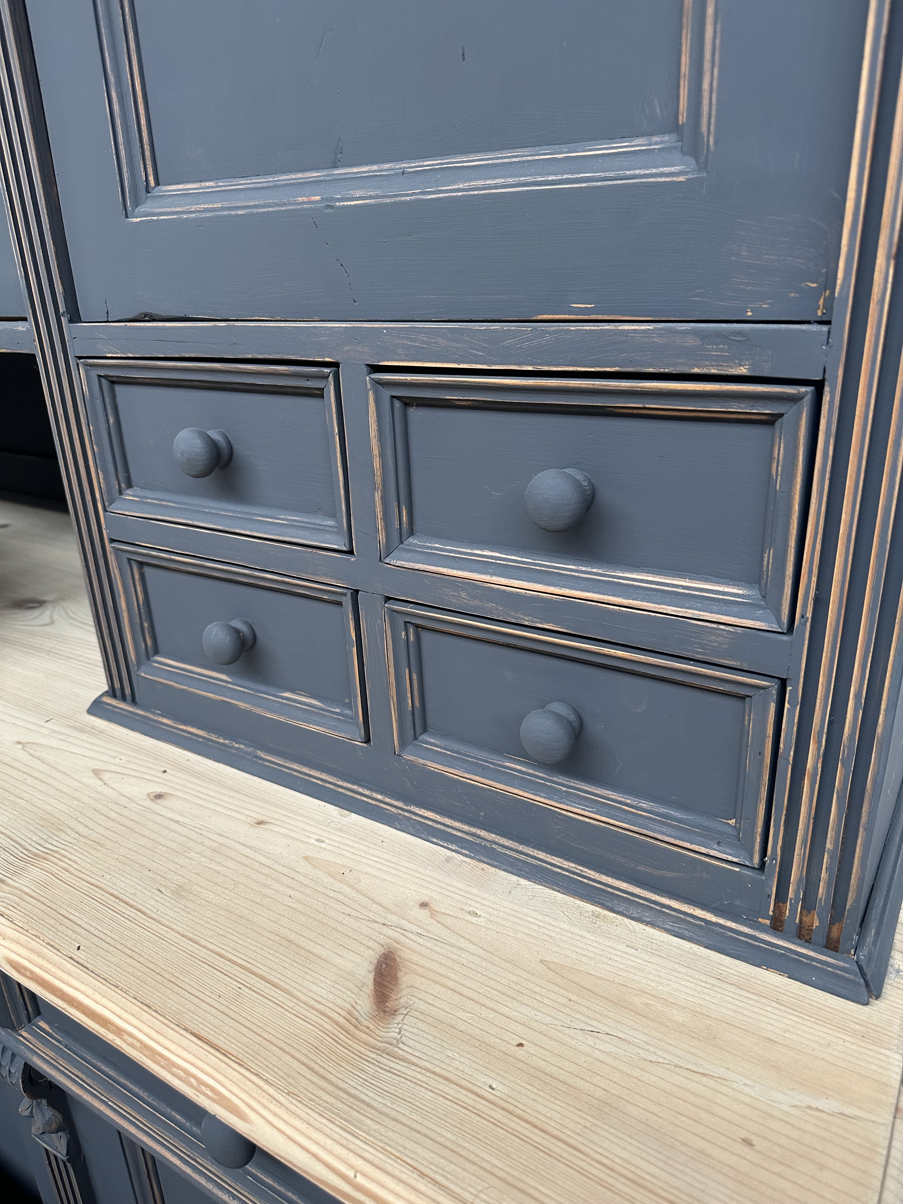 Afmetingen: lengte: 2m, hoogte: 2m20cm, diepte onderkast: 56 cm