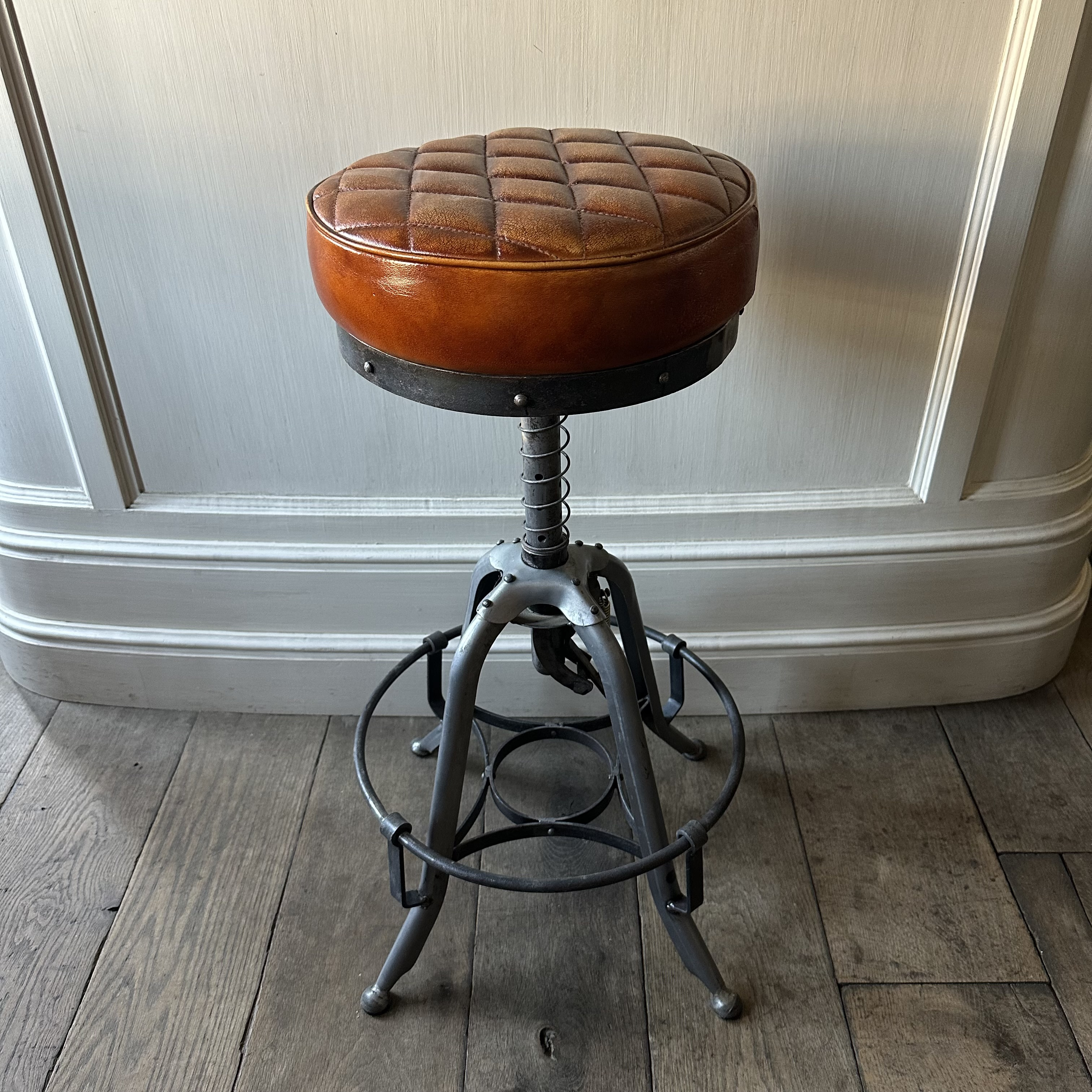 Krukken met geitenlederen zit, in hoogte verstelbaar (tussen 59cm en 81cm), €150/stuk