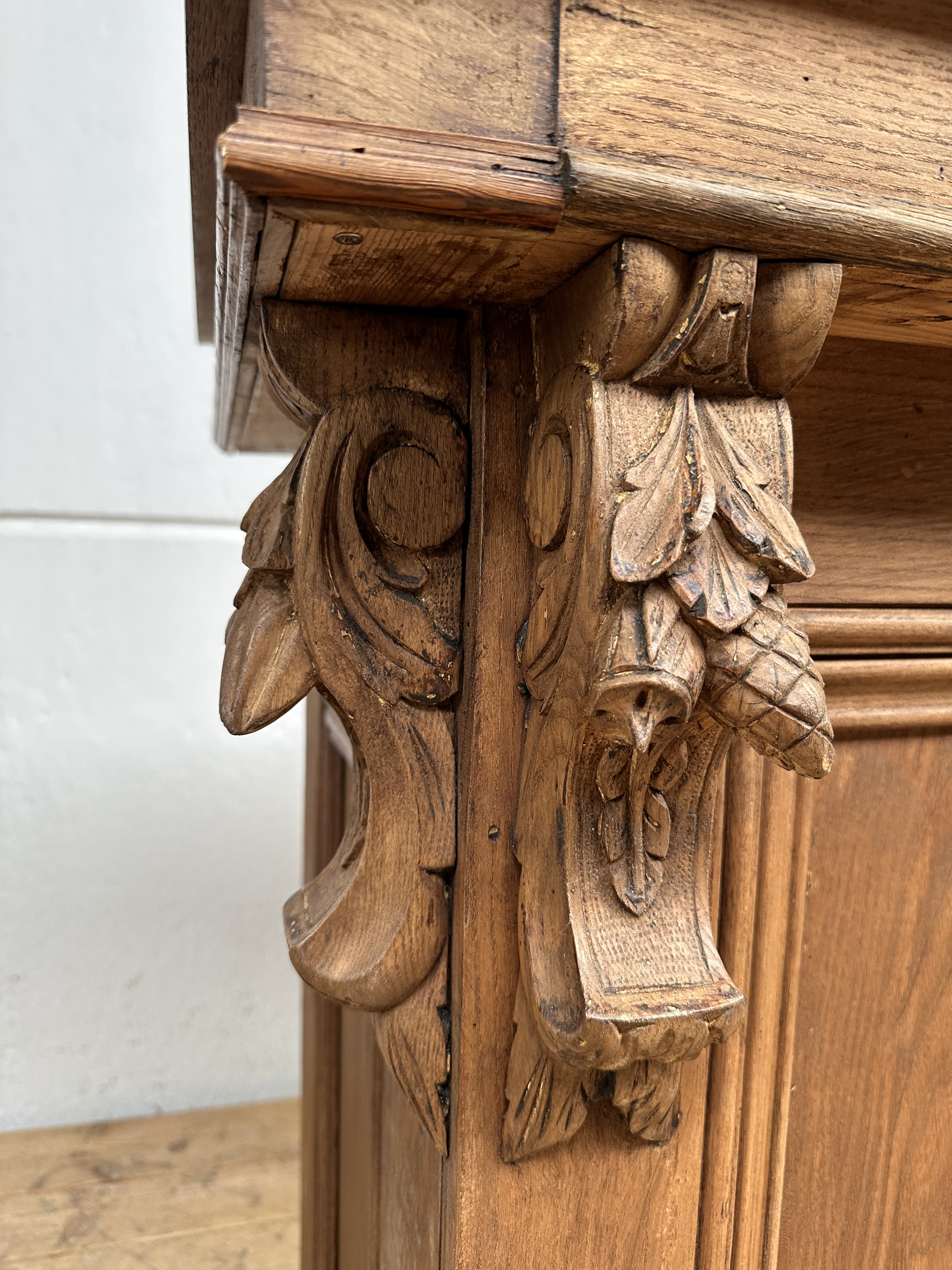 Antieke toog met prachtig sculpteerwerk, inclusief mooie oude tapkraan